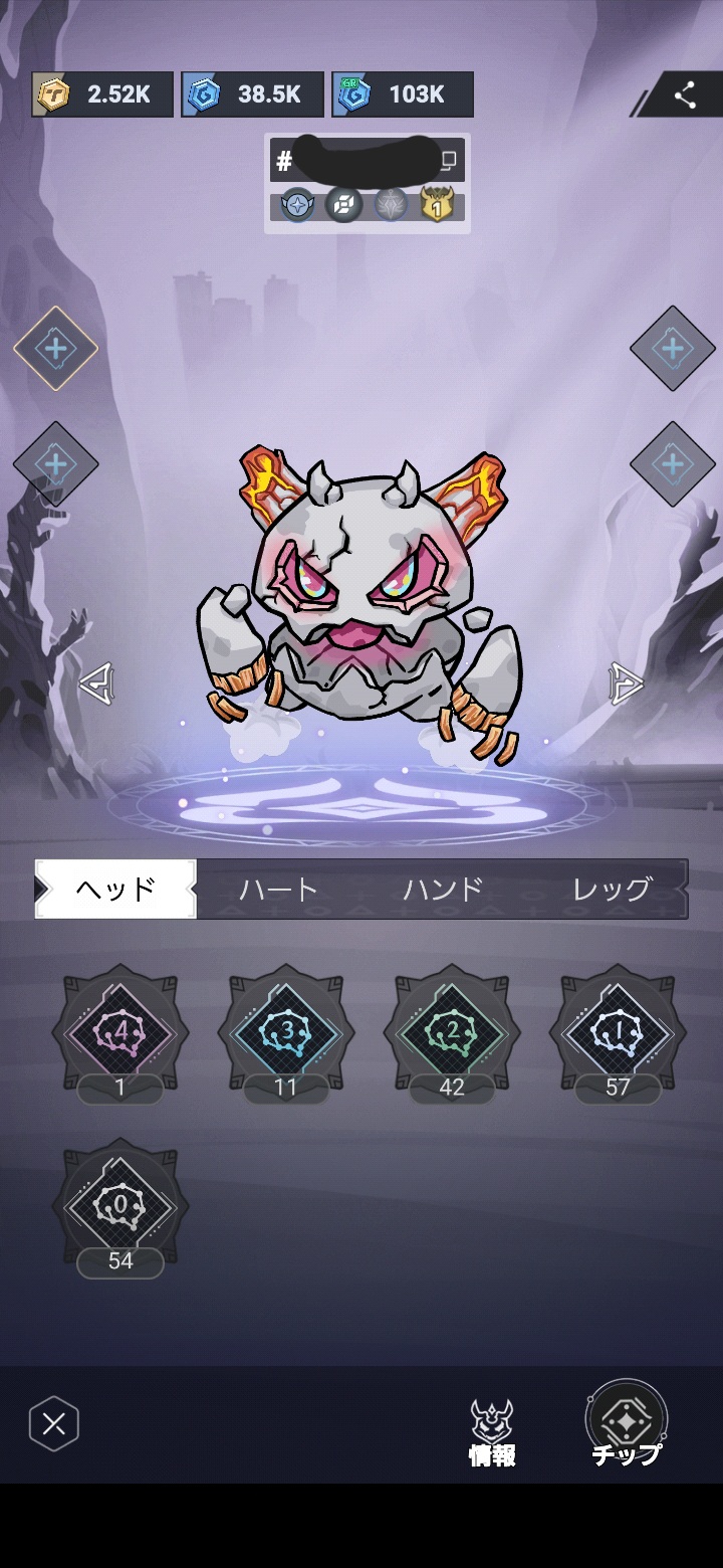 • ガチャで同じカードを引いた際に最大4回までカードを強化する事が可能(カードによってどの部位が強化されるかは予め決まっている)