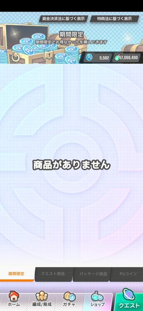 さらに、ゲーム内ショップでは何も購入できない状態が続いています。