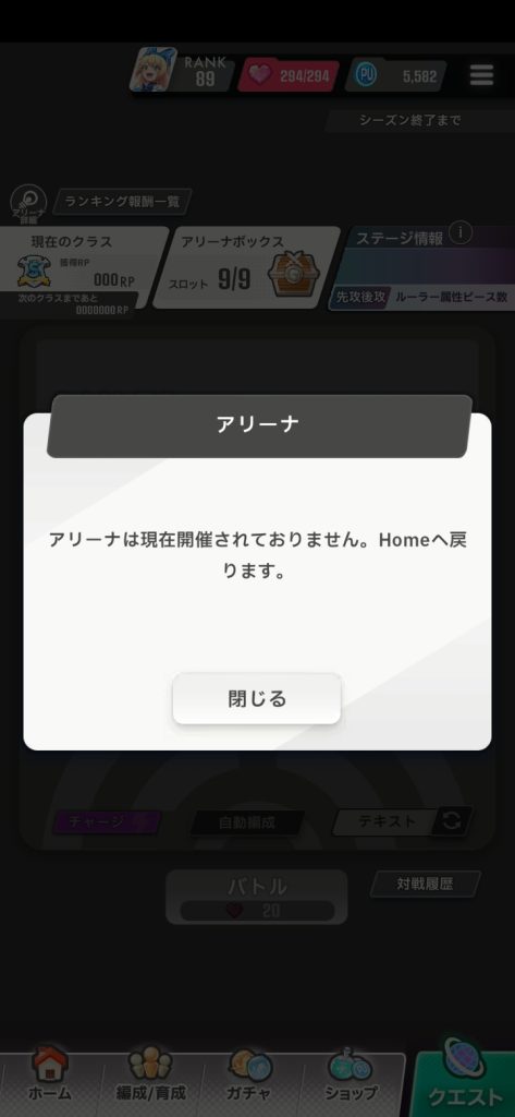 現在、エレメンタルストーリーワールドではアリーナ機能が終了しており、プレイヤー同士が対戦を楽しむ場が失われています。